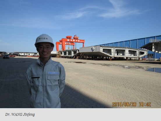 WANG Jinfengled the supervision team to gain precise control over a series of constructionwork, including manufacturing of steel box girders and maritime transportation,and achieve accurate matching between ring mouths. The team's supervisionhelped ensure the smooth and successful construction of the bridge.
