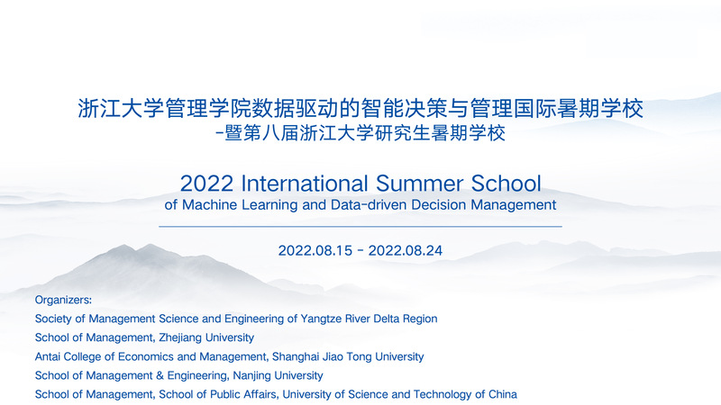 This Summer School was jointly held by School of Management at Zhejiang University (ZJU-SOM), International Research Center for Data Analysis and Management of Zhejiang University, the Antai College at Shanghai Jiao Tong University, School of Management & School of Public Affairs at University of Science and Technology of China, School of Management and Engineering at Nanjing University and Society of Management Science and Engineering of Yangtze River Delta Region.