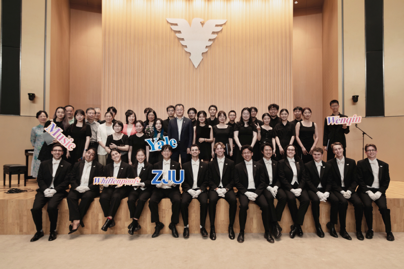 On June 10, the Whiffenpoofs from Yale University and the Wenqin Choir from Zhejiang University came together to orchestrate an auditory feast. The event, aquiver with youthful vibrancy and marked by a fusion of Eastern and Western cultures, was hosted in the Golden Hall of the School of Management at Zhejiang University.