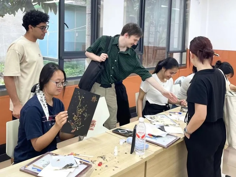 On May 23, 2025, 18 international students from 11 countries, including Germany, Thailand, and Yemen, gathered at the Zijingang Campus for a hands-on experience with the traditional Chinese art of shao bo hua (gilded foil painting). Guided by multimedia presentations, students immersed themselves in the craft's ancient techniques. As they carefully burned, carved, and applied metal foil, their final creations sparkled with pride and joy—blending heritage with creativity, and building cultural bridges through the brilliance of gold.